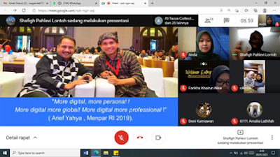 Webinar ini menghadirkan 2 narasumber yaitu Shafigh Pahlevi Lontoh, wakil ketua Kadin Kota Semarang. Pemateri yang kedua yaitu Anis Fitria, S.E.I, M.S.I, Dosen Syariah UIN Walisongo. Narasumber pertama menjelaskan tentang pentingnya mengenal digitalisasi, dilanjut pemateri kedua membahas tentang UMKM Indonesia yang siap di ekspor.